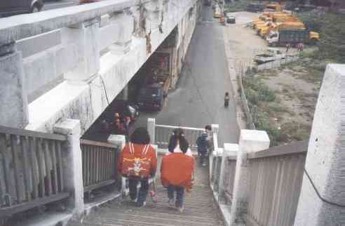高雄駅をくぐる地下道。バイク専用レーンもあるので自転車でも快適。右上は、コンピュータ学校。